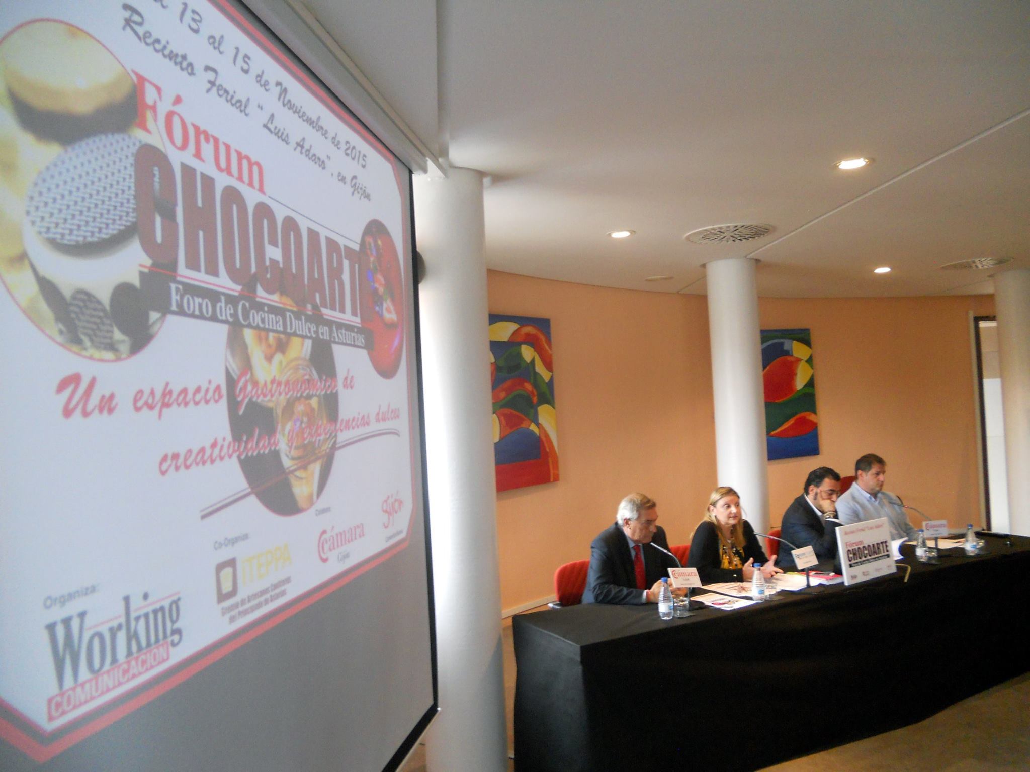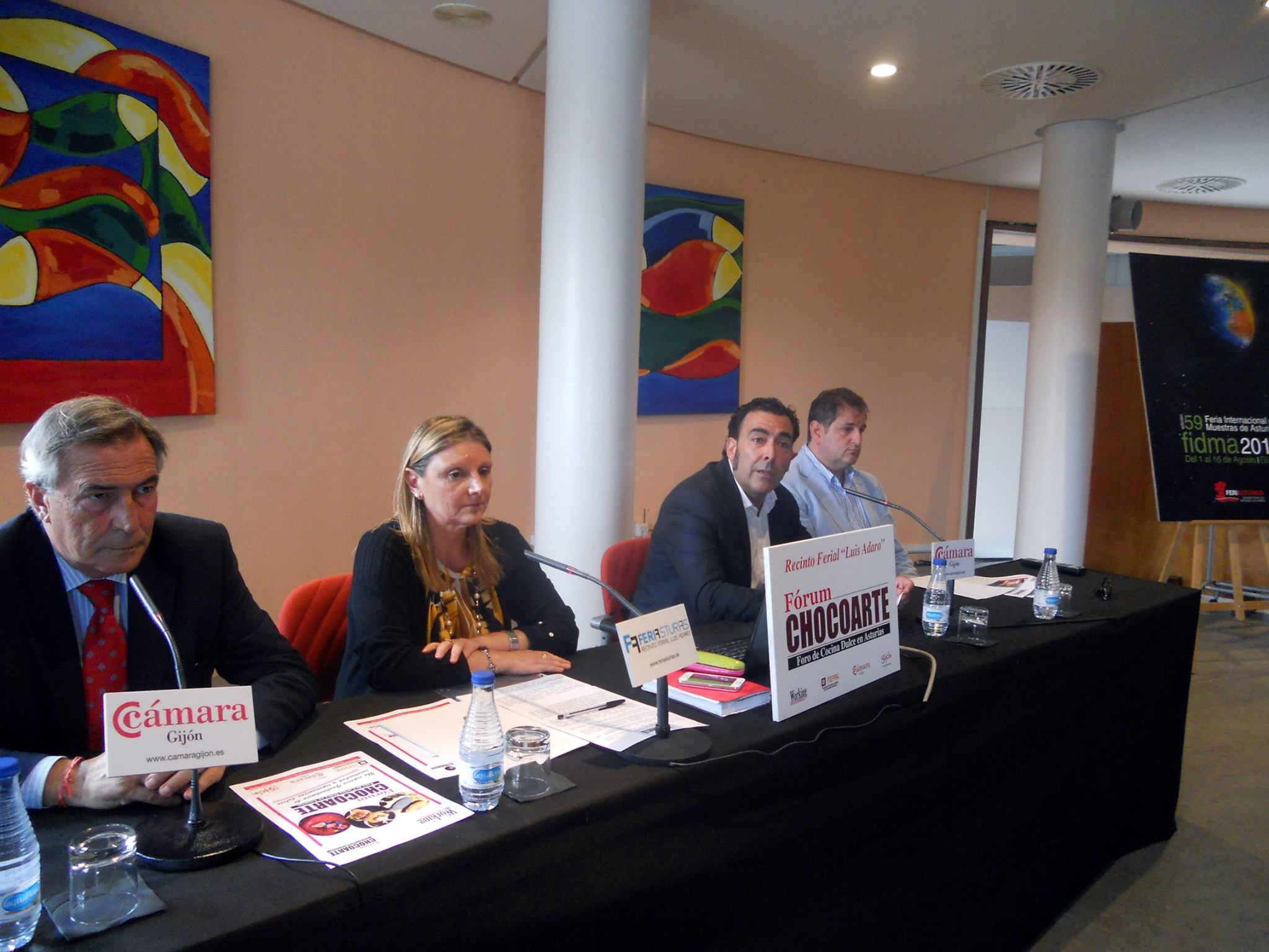 Ayer, viernes 14 de agosto, tuvo lugar la presentación del Forum Chocoarte. El acto tuvo como escenario la Feria Internacional De Muestras de Asturias (FIDMA) y estuvo a cargo de Álvaro Muñiz, director de FIDMA; Guadalupe Zapico, miembro de Working Comunicación; Alberto Díaz, director de ITEPPA; y Pablo Balbona, directivo y representante del Gremio de Artesanos Confiteros del Principado de Asturias.