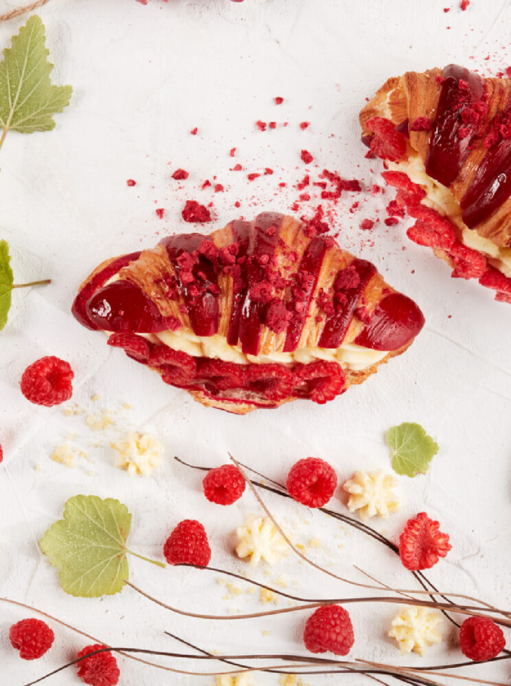 Croissant bicolor de cheesecake y frambuesa
