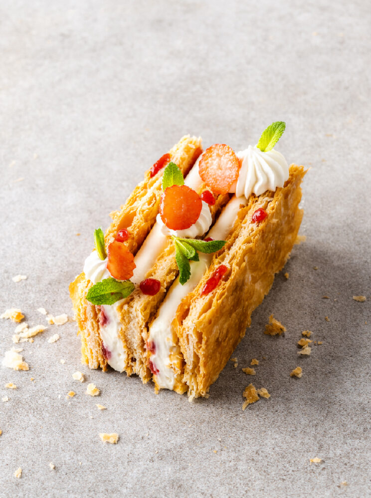 Milhojas de cheesecake y fresas